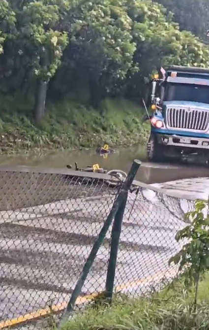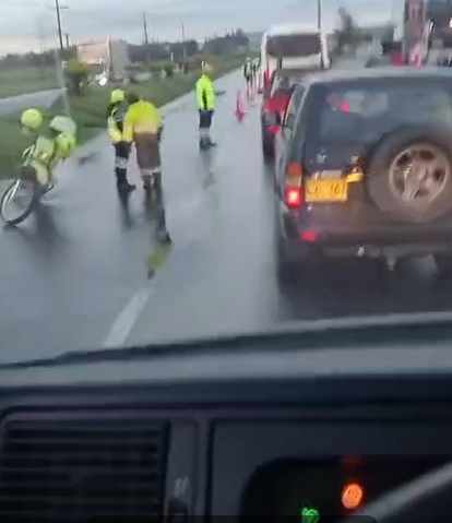 Uno de los accidentes se presentó metros después de la estación de Bomberos de Mosquera, sobre la vía que conecta con Bogotá. De acuerdo con versiones preliminares, un motociclista que se desplazaba por el sector habría sido arrollado por una volqueta. Testigos aseguran que la vía presentaba fuertes encharcamientos a causa de las lluvias de la madrugada, lo que habría dificultado la visibilidad y el control de los vehículos. La emergencia generó congestión vehicular mientras las autoridades atendían la situación y realizaban el levantamiento del cuerpo.