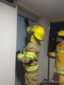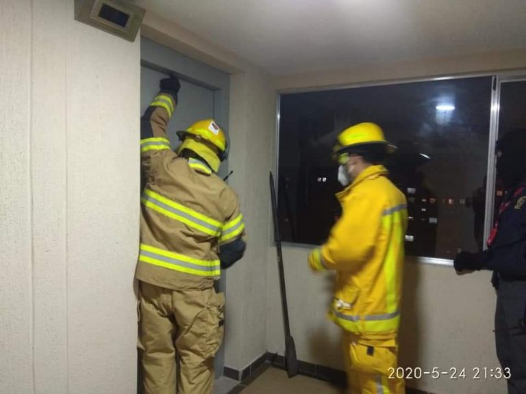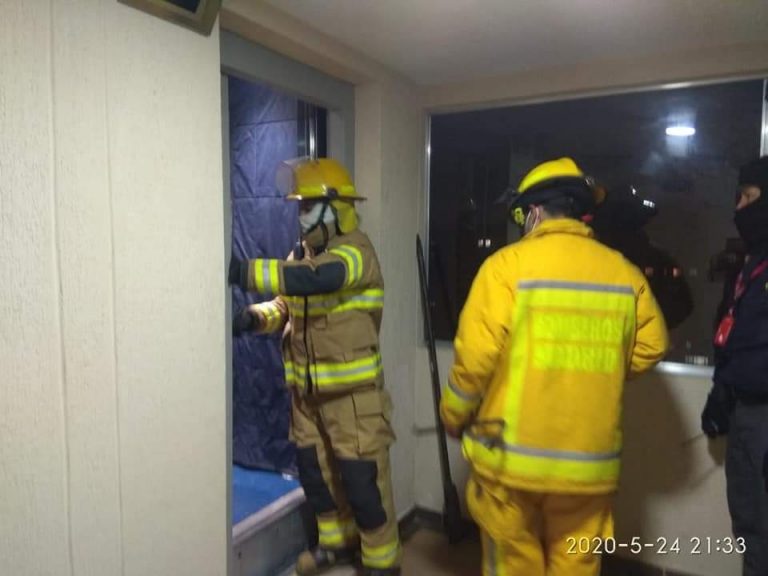 A las 9:15 pm hizo presencia el cuerpo de bomberos voluntarios del municipio, esto con el fin de extraer de manera segura a la mujer de 29 años que se encontraba en el piso número 13.